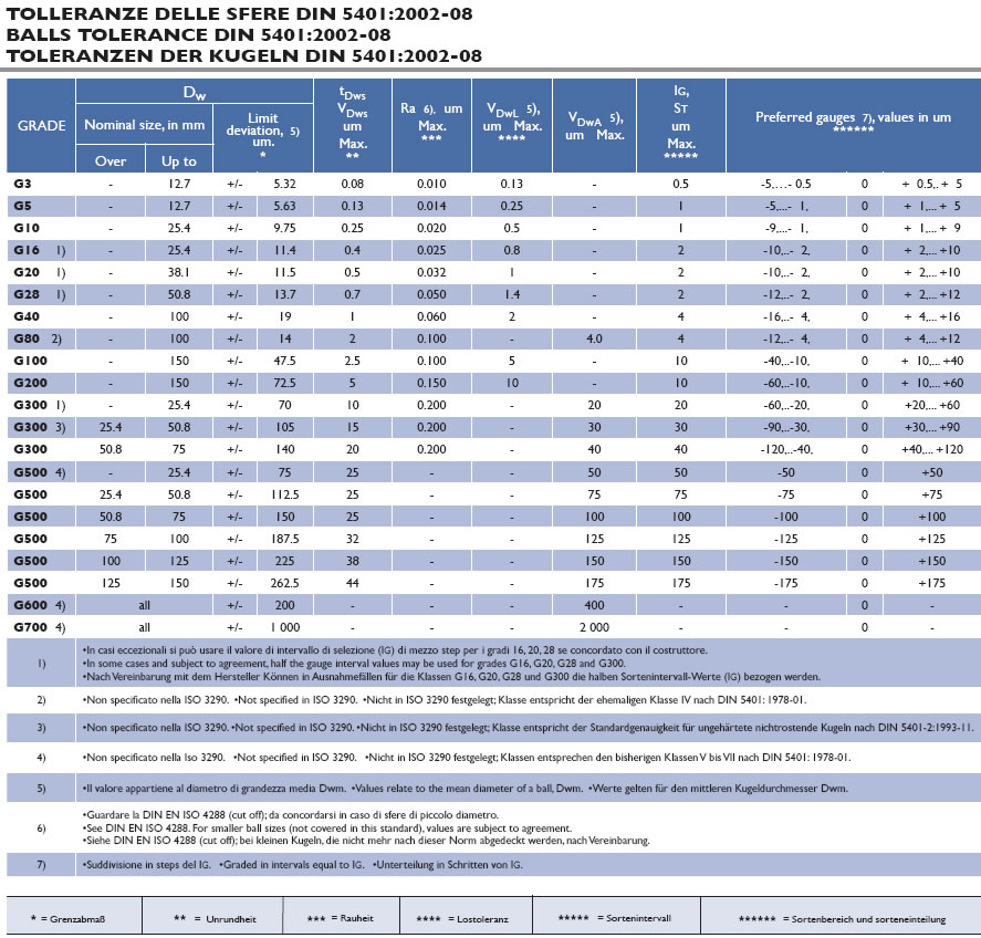 Balls tolerance DIN 5401:2002-08