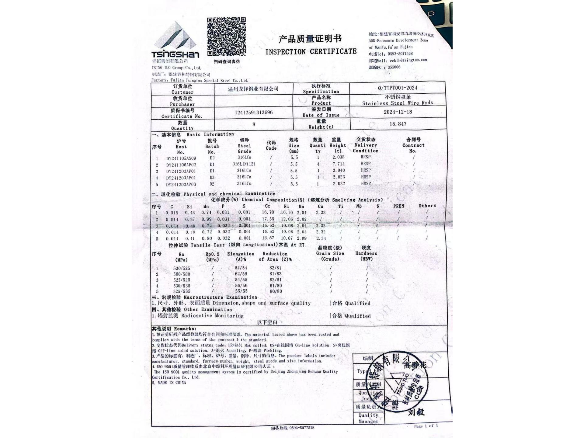 5.证书:ISO-9001:2015 ,SGS ROSH