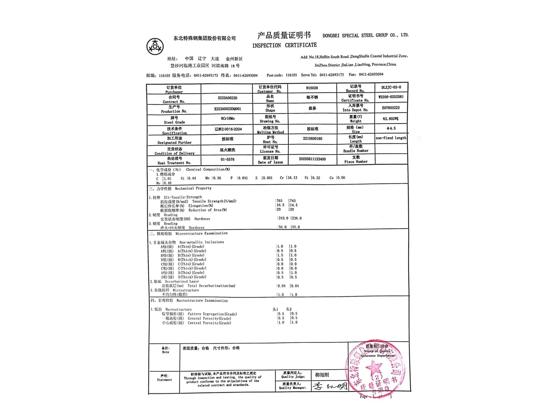 6.特性:AISI440/AISI440C具有最高的材料强度和中等的耐腐蚀性。它们可耐受酒精、食品环境、淡水、多种石油产品、有机材料和蒸汽。