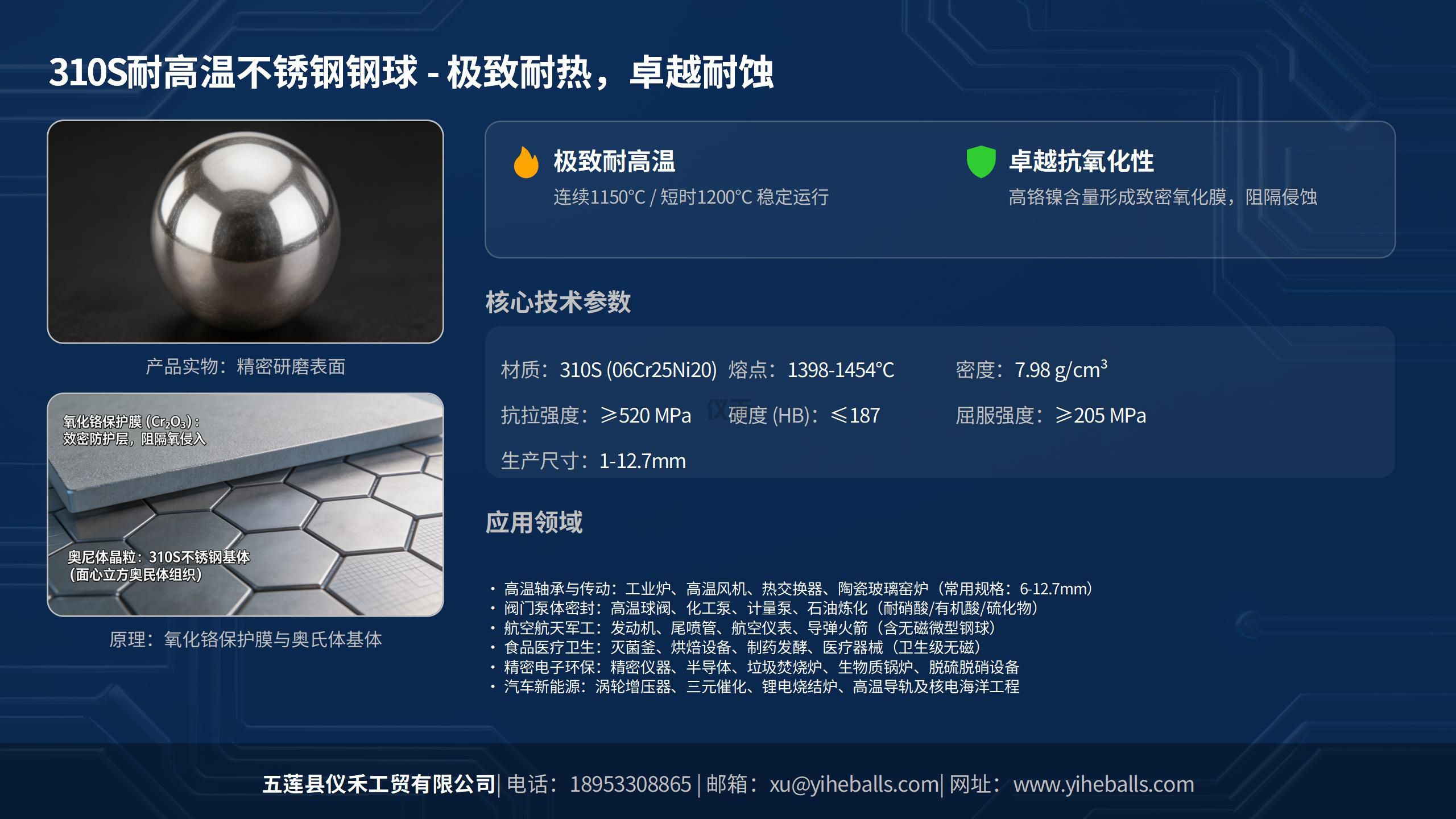 310S 不锈钢钢球 产品详情描述产品概述310S 不锈钢钢球是我司专为高温、耐腐蚀、高负荷工况研发生产的高性能精密钢球产品,采用国标及 ASTM 标准优质 3